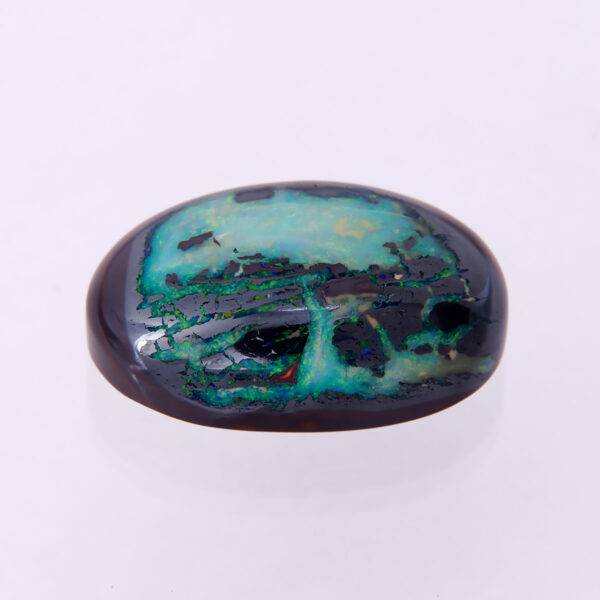 母岩に付いたオパール層が綺麗なオーストラリア産オパールです。 オーストラリアのクイーンズランド州の「丸い石」から見つかり、鉄鉱石の母岩の中に付着してるオパールの帯の様な層を母岩と共に取り出し研磨したものです。