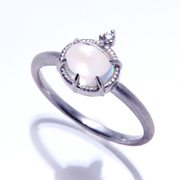 TAKAオリジナルのハンドメイド1点ものリングです。上品なシルク仕上げ&ミルグレイン加工も全て手作業でお仕立てしています。繊細ですが高級感ある大人なデザインです。