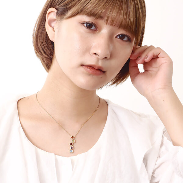 TAKAオリジナルのハンドメイド1点ものネックレスです。 カラフルな宝石が楽しく並んだネックレスです。